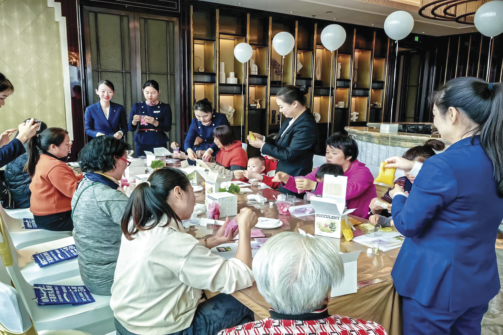3月8日一大早,運達中央廣場住宅區(qū)的管家小姐姐們已恭候在業(yè)主進出的必經(jīng)之路,為往來女性業(yè)主送上暖心飲品和鮮花。在老年活動中心,數(shù)十位業(yè)主聚在一起加入永生花和數(shù)字油畫DIY活動,大家一起做手工、聊家常,現(xiàn)場充滿歡笑與喜樂。