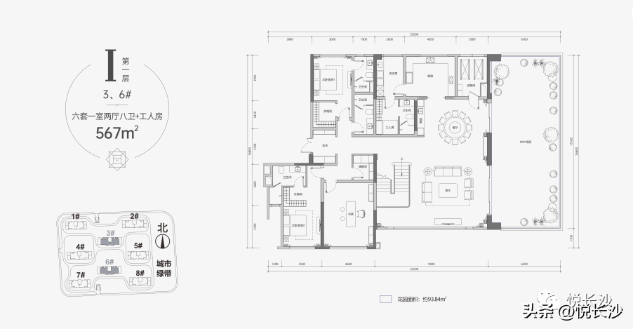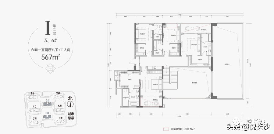 六套一室兩廳八衛(wèi)+工人房的格局讓大家族居住也毫不局促。